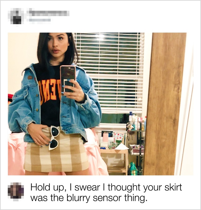“Клянусь, я думал, что твоя юбка – это размытая цензура.”