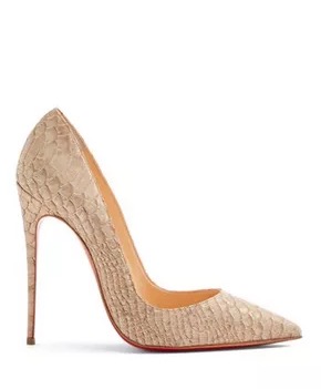 Колодка, каблук, набойки: изящный изгиб колодки, края туфли вырезаны с изгибом ( у подделок они часто прямые и высокие). Носки лишь немного приподняты, а у подделок они задраны вверх. Каблук выполнен из натурального материала того же цвета что и основа. Каблук подделки может иметь другой угол и изгиб. На светлых туфлях светлые набойки. Это золотое правило хороших обувных мастеров. В случае если вы зацепитесь каблуком одной туфли о кожу другой у вас не останется чёрной полоски.